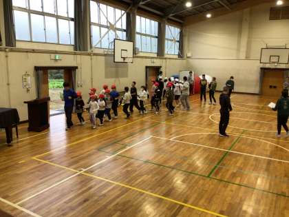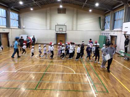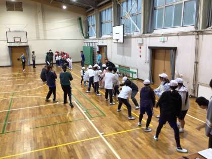 入場、形だけの綱引き、移動、退場の練習をしました。