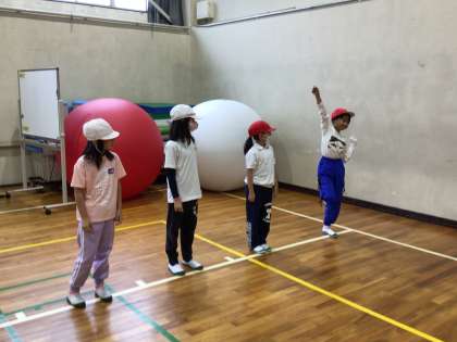 「みつくりんぴっく」の並び方や名前を呼ばれてポーズをすること、走り終わったときの並び方を体育館で行いました。ポーズを考えてなかったので思いっきりはできなかった子もいました。当日までにどんなポーズをすることになるか楽しみです。