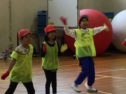 4人グループに分かれて、一つのグループのダンスをみんなで見ました。