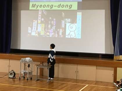 2番目の子は、韓国を紹介しました。韓国語の看板がある街並みですね。韓国ドラマが流行していた時に行ったことを思い出しました。