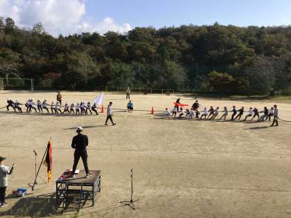 「ゴーゴーゴー」を歌った後、実際に綱引きをしました。