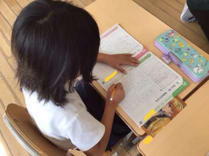 振り返りがマス一杯に書けるようになりました。マスの数が足りなくてはみ出して書いている子もいます。