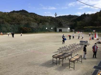 器具の準備や長机などの準備、ライン引き、アナウンス練習、トイレ掃除など、やらないといけないことがたくさんありましたが、一生懸命動いてくれたので時間内に余裕で準備ができました。ありがとうございます。