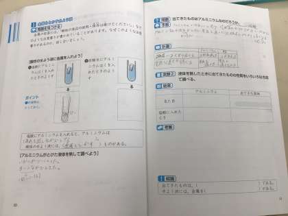 アルミニウムが溶けた塩酸を熱したら、白い粉のようなものが残りました。