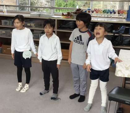 旋律で呼びかけあおうということで、4人対4人に分かれてかけあいで歌を歌っています。