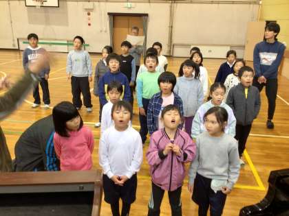 全校で「怪獣のバラード」の2部合唱の練習を始めました。