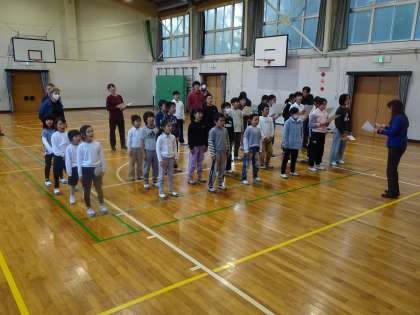 講師の先生をお招きし、2部合唱「怪獣のバラード」の練習をしました。楽譜上は4拍子の曲ですが、2拍子だと思って、体を動かすくらいのリズム感で軽やかに歌うとよいとのご指導でした。