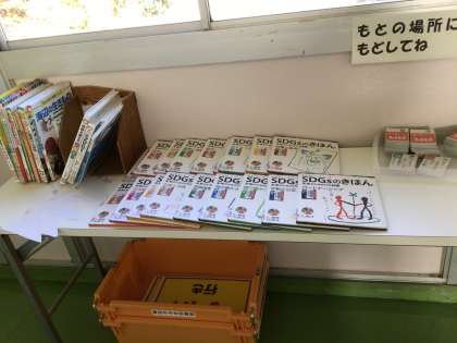 11月29日 5、6年生 国語科出前授業 公開日 2024/11/28 更新日 2024/11/28 お知らせ 今週からスタートした「発信しよう、私たちのSDGs」の学習は、5、6年生合同で授業を進めています。SDGsについて調べて興味のもったテーマでまとめていき、最後は全員のものを合わせてパンフレットを作ります。今日は、中央図書館から講師の先生を招いて、資料の調べ方やパンフレット作りについて授業をしていただきました。みんな、真剣に自分のテーマの本を読み、パンフレット作りに取り組みました。