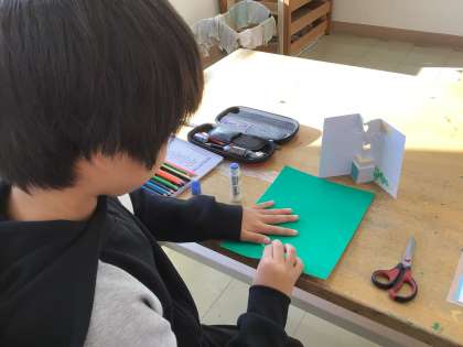 飛び出すカード作りをしていました。