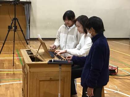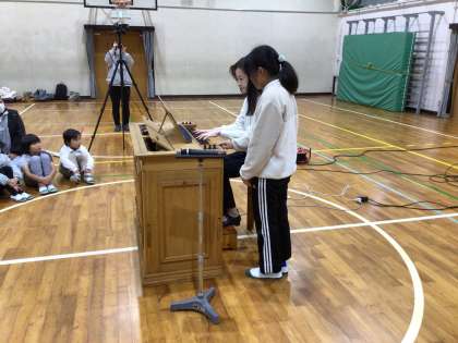 11月29日 アウトリーチ事業2 公開日 2024/11/29 更新日 2024/11/29 お知らせ パイプオルガンの特徴を教えていただきました。 パイプオルガンに欠かせないものは1 パイプ 2 息・空気 3 鍵盤だそうです。 パイプを実際に見せていただき1音しか出ないことなどを教えていただきました。 そして、1オクターブあげたり、音色を変えたりするために、児童も一緒に演奏させてもらいました。貴重な経験ができましたね。