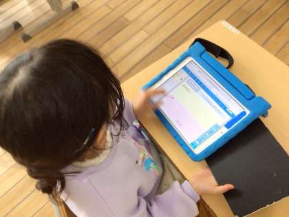 確認が終わるとすぐにタブレットのワークシートに問題文を入力し始めました。どんな問題ができるか楽しみです。