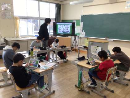 理科のじゅぎょうの終わり頃に、カフートという学習アプリで復習問題を解いています。「案外、難しい」という声が聞こえてきました。全部正解になると絵が全部見えるようです。大型テレビの絵はまだまだですね。