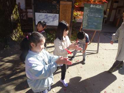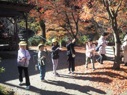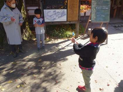 自分で作った竹とんぼを飛ばしています。練習していくうちに、こつがだんだん掴めてきたようです。