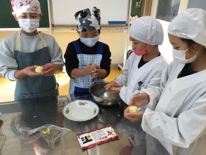 ジャガイモをつぶして、丸めてつぶして、バターで焼きました。