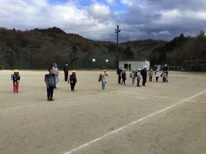 早く運動場に出てきた子たちは、静かに待っています。