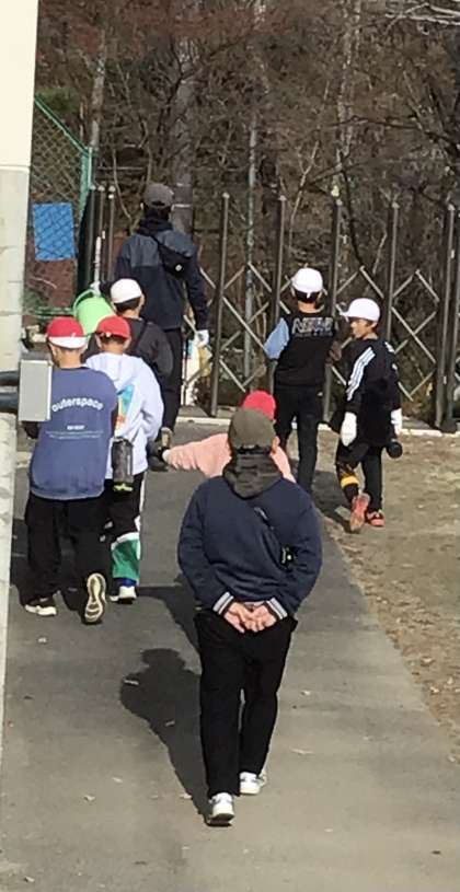 理科の授業で、「かけがえのない地球環境」の教材から、通学路の掃除をしようということになりました。加茂丘高校まで歩いて行き、そこから学校までの通学路のゴミを拾ってきます。どんなゴミが落ちているでしょうか。