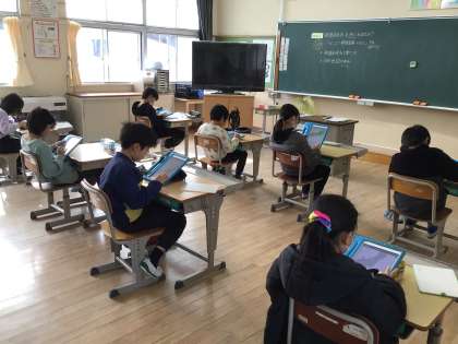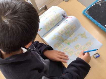 12月20日 3・4年生 社会科 公開日 2024/12/20 更新日 2024/12/20 お知らせ 担任の先生がお休みでも、指示通り各自で進めています。 最初に、教科書のQRコードを読み取って、「ビンゴ!都道府県カルタ」をしました。読み札にあった札を当てるというものです。 次に、教科書のその県を象徴するものの下に都道府県名を書きました。 最後は、タブレットにあるアプリ「都道府県パズル」をしました。なるべく早く日本地図を完成させるものです。 みんな集中してやっていました。