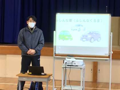 冬休みの生活の話では、4色の車で、「自分の命は自分で守ろう」というメッセージを送りました。