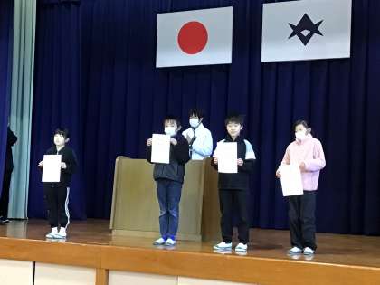 持久走大会の練習で、一番多く走った子の表彰もしました。