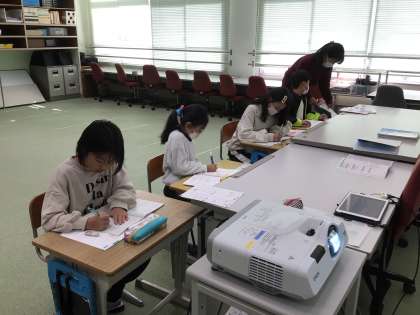 その後、教科書のまとめの問題や算数の友の問題を解きました。いつも落ち着いてじっくり考えて答えを導き出せる4年生です。