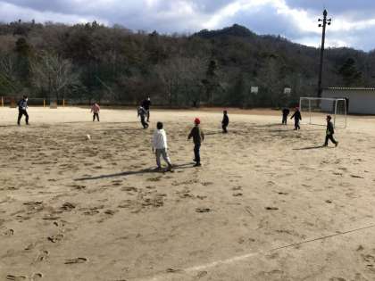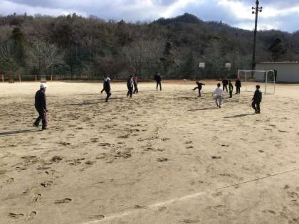 今朝は寒くて、氷が張っていました。それでも、休み時間になると、サッカーをやりに運動場に出てきます。運動場のコンディションはあまり良くなくてツルッと滑ってしまいそうになりました。そんなことは関係なく、元気よくサッカーをしていました。