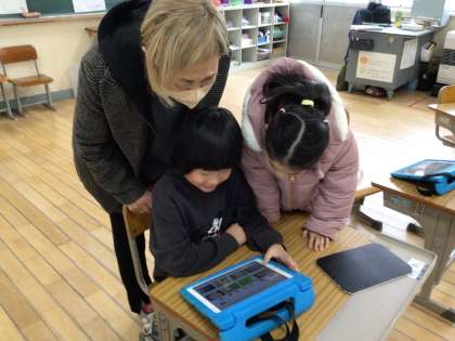 そのため、タブレットで検索して、どんな凧があるか、どんな凧を作るか検索していました。