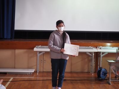 今回、本校の児童のカットが選ばれて入選しましたので表彰しました。おめでとうございます。