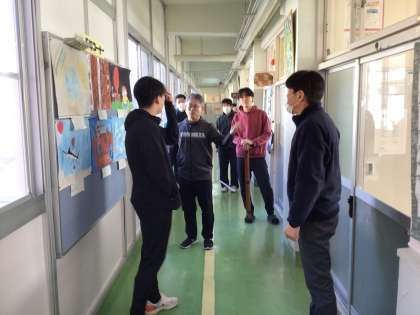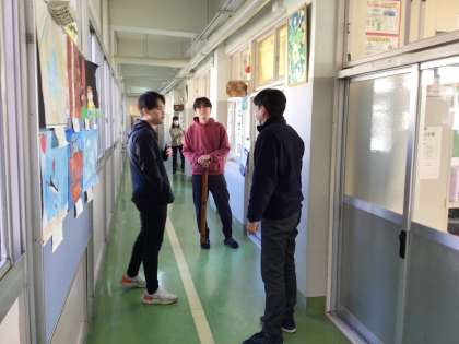 1階廊下から2階廊下を通り6年の教室前に行きます。その間もいろいろな教室を除いているのですが、授業に集中していて気付きません。3・4年教室の教師が気付き、声をかけますが子どもの様子を見に来たと言って通り過ぎます。ここで、3・4年生の担任が職員室に不審者らしき人がいると第一報が職員室に入れます。不審者が6年生の教室の入口あたりに来た時に、6年生の担任が教室から出て話を聞き始めます。6年生の知り合いだから授業を見せろと穏やかではあるが不思議な態度をとり始めます。6年生の子たちはおかしいと思い、教室の中から鍵をかけ、ベランダを通って3・4年生の教室に移動します。この間も3・4年生の担任は非常ベルを鳴らして、職員室に不審者の様子などを伝えています。5年生の担任は6年生の動きに気付き、不審者対応を6年生の担任とします。5年生も教室を施錠し、ベランダから3・4年生の教室に移動します。校内放送が入り、6年生の教室から離れていた教室も施錠し、男性教諭は担当の児童を他の教師に任せ、現場に駆けつけます。1・2年生教室も放送と同時に施錠されます。子どもたちは教室の中央で姿勢を低くして静かに待機しています。子どもたちは非常にスピーディに避難できています。教員も速やかに現場に駆けつけ複数で対応ができています。