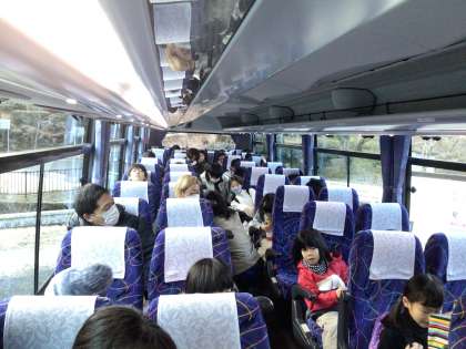 バスの中は学年でまとめています。