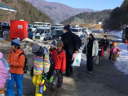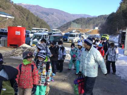 1月24日 全校体育学習(スキー) 出発 平谷高原スキー場