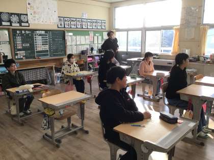 まずは姿勢を正して保健委員会の子たちの話を聴いています。