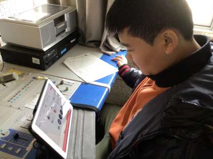放送委員の当番で、給食の時間に放送を流しています。