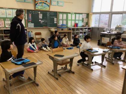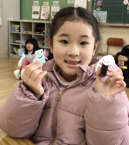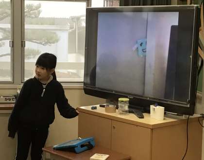 すきま君をスポンジで作って、学校中の隙間を見付けてすきま君を差し込んで写真を撮りました。