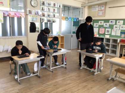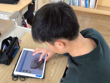 今までの活動を振り返りながら、写真を選び、簡単なフレーズを書き込んでいきます。
