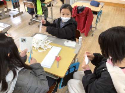6年生の子たちとのふれあいを思い出しながら、メッセージを書いていました。