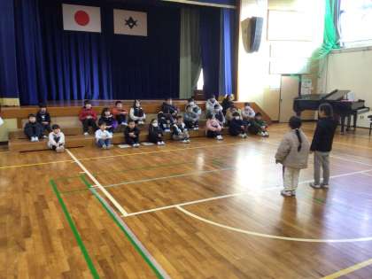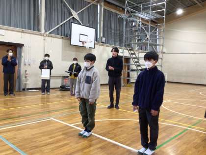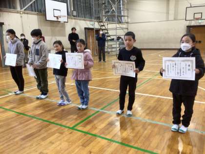 前回の児童集会の時に表彰できなかった体力テストの表彰をしました。