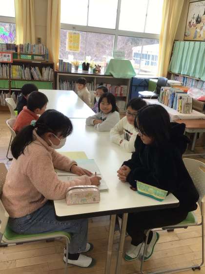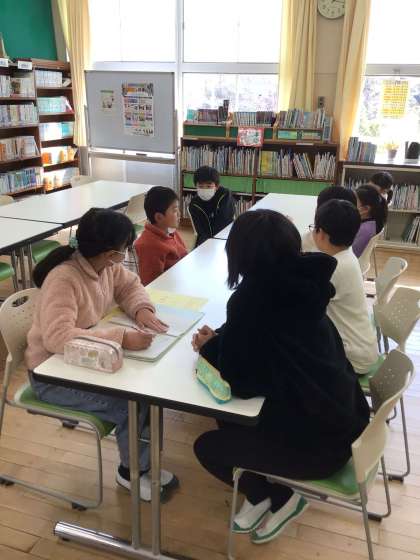 毎日、バスが来るまで、藤の回廊の駐車場で和気あいあいと過ごしているので、通学団会も頭を付き合わせて楽しそうに行なっています。
