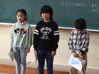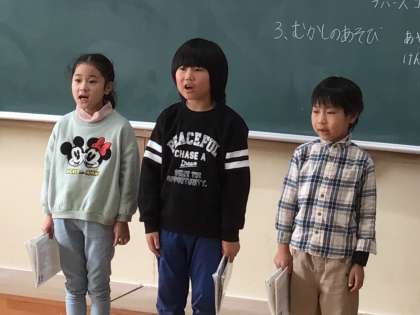 3人で歌を歌った後、音読に入っていきます。暗記をして堂々と音読していました。