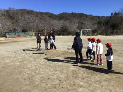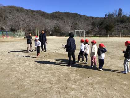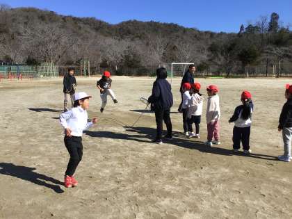 交流学級で、長縄跳びの八の字跳びをしていました。