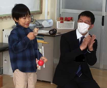 隣にいる担任もうれしそうです。