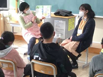 5・6年生での読み聞かせをしてくださっている方は、長い間、読み聞かせをしてくださっている方です。御作小学校の歴史を語っていただける方です。司書さんが隣で寄り添ってみえます。司書さんも長い間、御作小学校の図書教育を支えてくださっています。