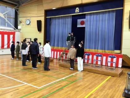 入場の仕方や座り方、お辞儀の仕方、返事の仕方を練習しました。