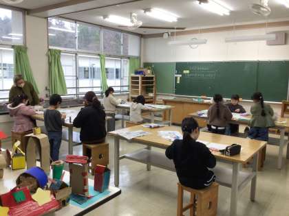 国語科の授業で学習した「スイミー」の場面を紙版画で表現しています。