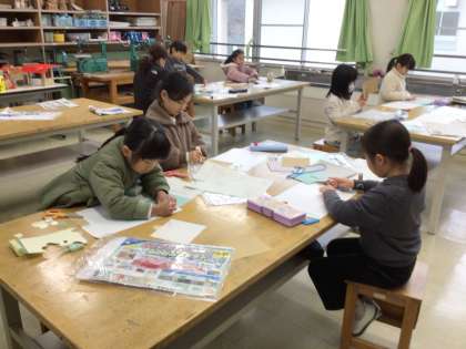 いろいろな教材を組み合わせて作製することで、版画を刷ると面白い仕上がりになります。