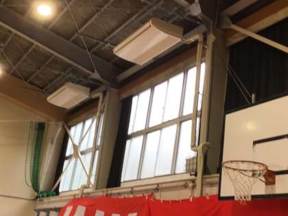 卒業式の練習のため、工事が中断していますが、体育館に空調機がつきます。
