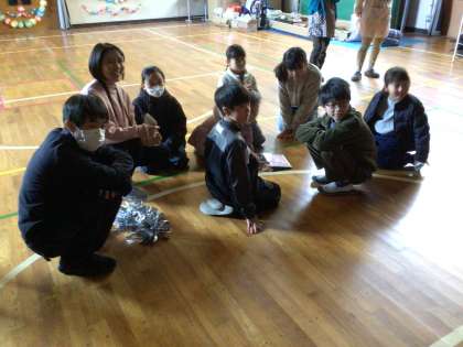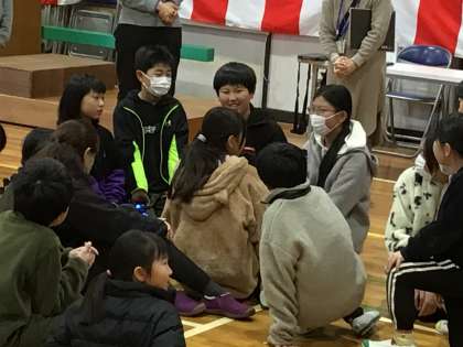 縦割り班で、楽しそうに6年生のクイズに答えていました。