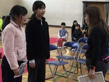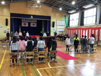 講師の方に、全校児童で歌う「校歌」と「まほろば」を教えていただきました。