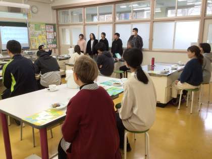 その後、お題当てクイズをしました。教員がお題を当てるために質問をしていくのですが難しくて答えがでてきません。6年生の子たちの温かい配慮でヒントをもらい、やっと当てることができました。とても盛り上がりました。