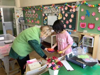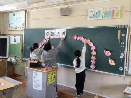6年生とゆり組、ふじ組の教室に飾り付けしました。