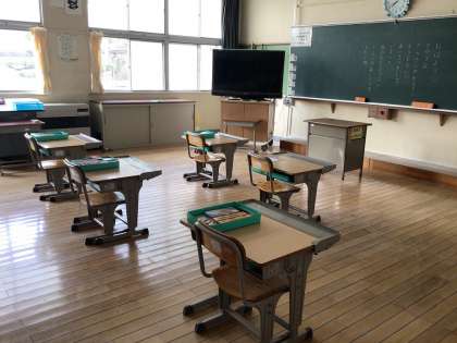 昨日の児童が下校した後の教室の様子です。机や椅子が整頓され、道具箱も決められた場所に整頓されています。自己管理ができている証拠です。すばらしいですね。